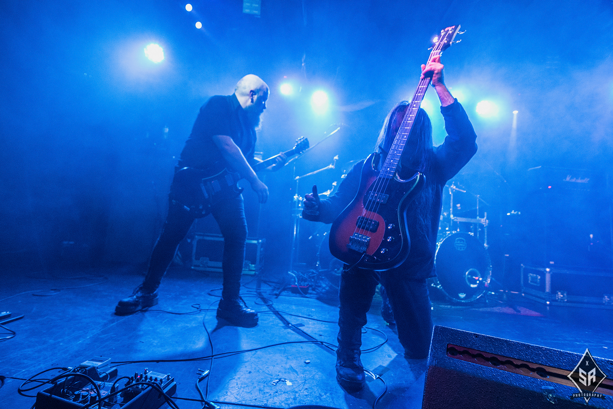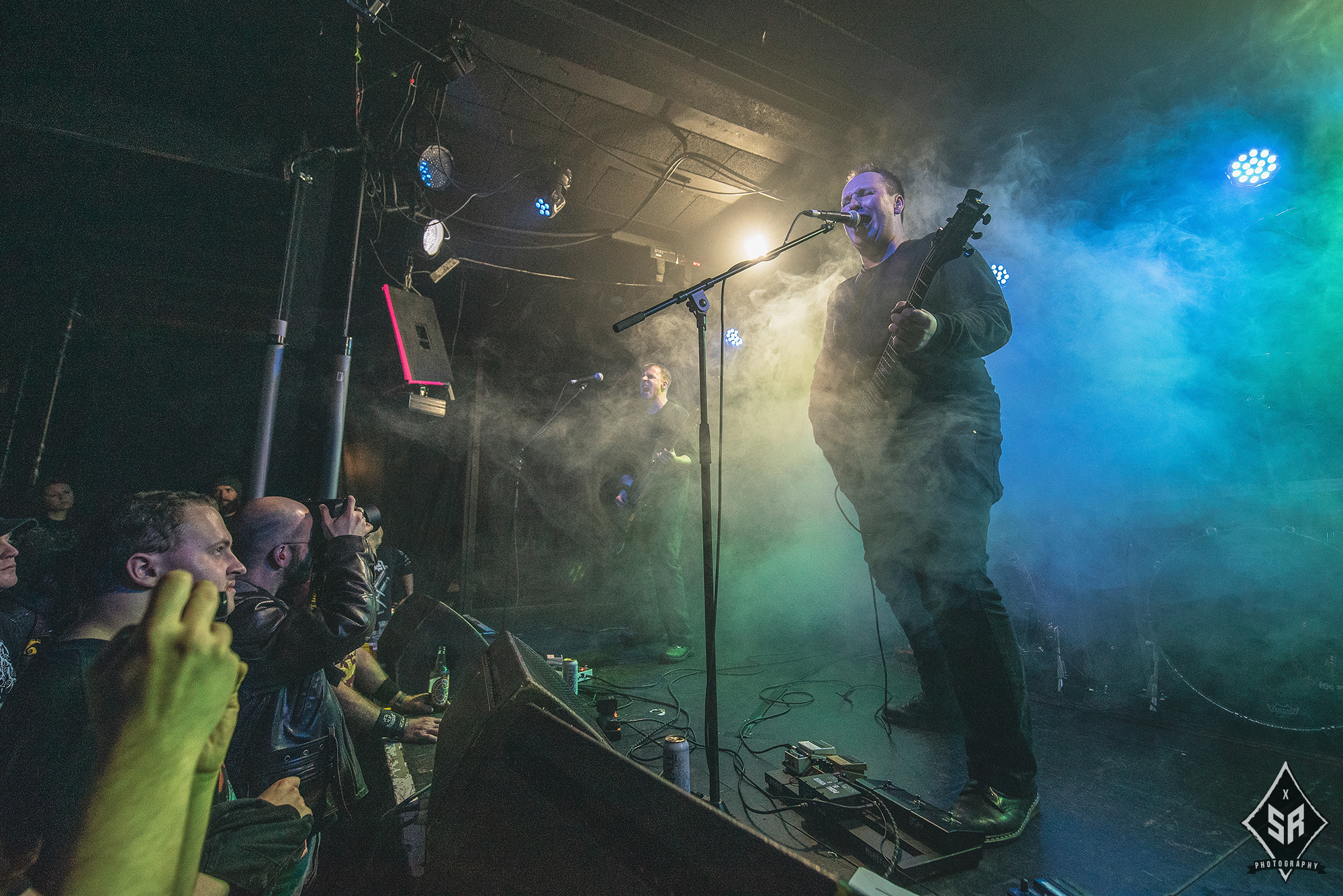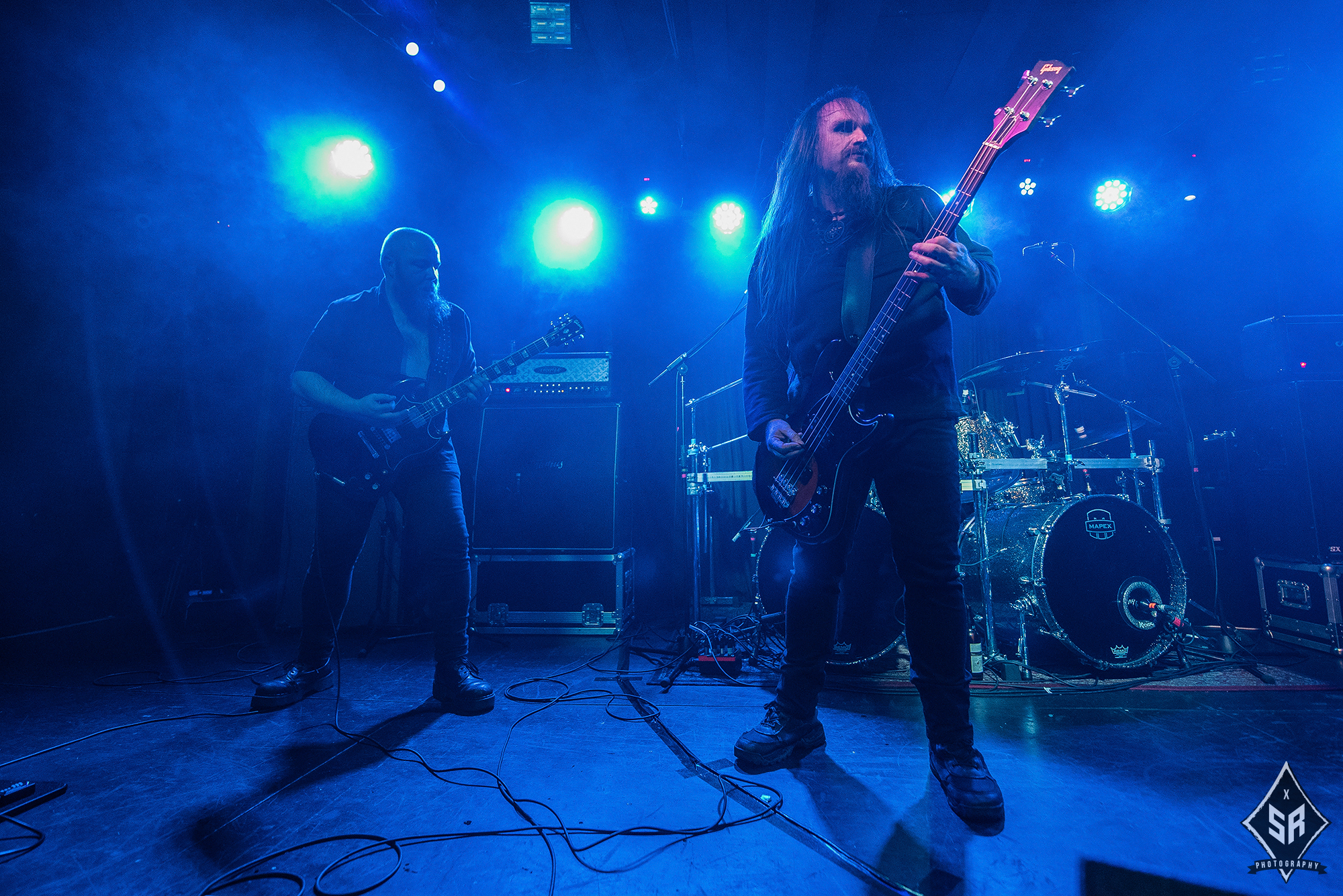 Although WINTERFYLLETH are the night’s headliners, it seems that a large portion of tonight’s crowd is here solely for SOLSTICE (WINTERFYLLETH included as they joke later on in their set). With a career spanning near three decades, the epic doom metallers are very much a firm favourite in the UK underground and with the band suffering a plethora of lineup changes across the years, it very much seems that the chance to catch them live in action is a rare treat indeed. And they did not disappoint. Although sandwiched between the black metal ferocity of WODE and the atmospheric icy riffs of WINTERFYLLETH, SOLSTICE held their ground with an arsenal of powerful riffing that towers above you, bombastic drumming and soaring vocals from new vocalist FelipeKutzbach. Although the music on offer was incredibly enjoyable, it was with Kutzbach who stole the show as his passionate vocal deliveries and animated stage presence captivated the crowd’s attention throughout their hour-long set. Given the rapturous response to every song performed here, it’s safe to say that SOLSTICE are very much adored in the underground and long may it continue.