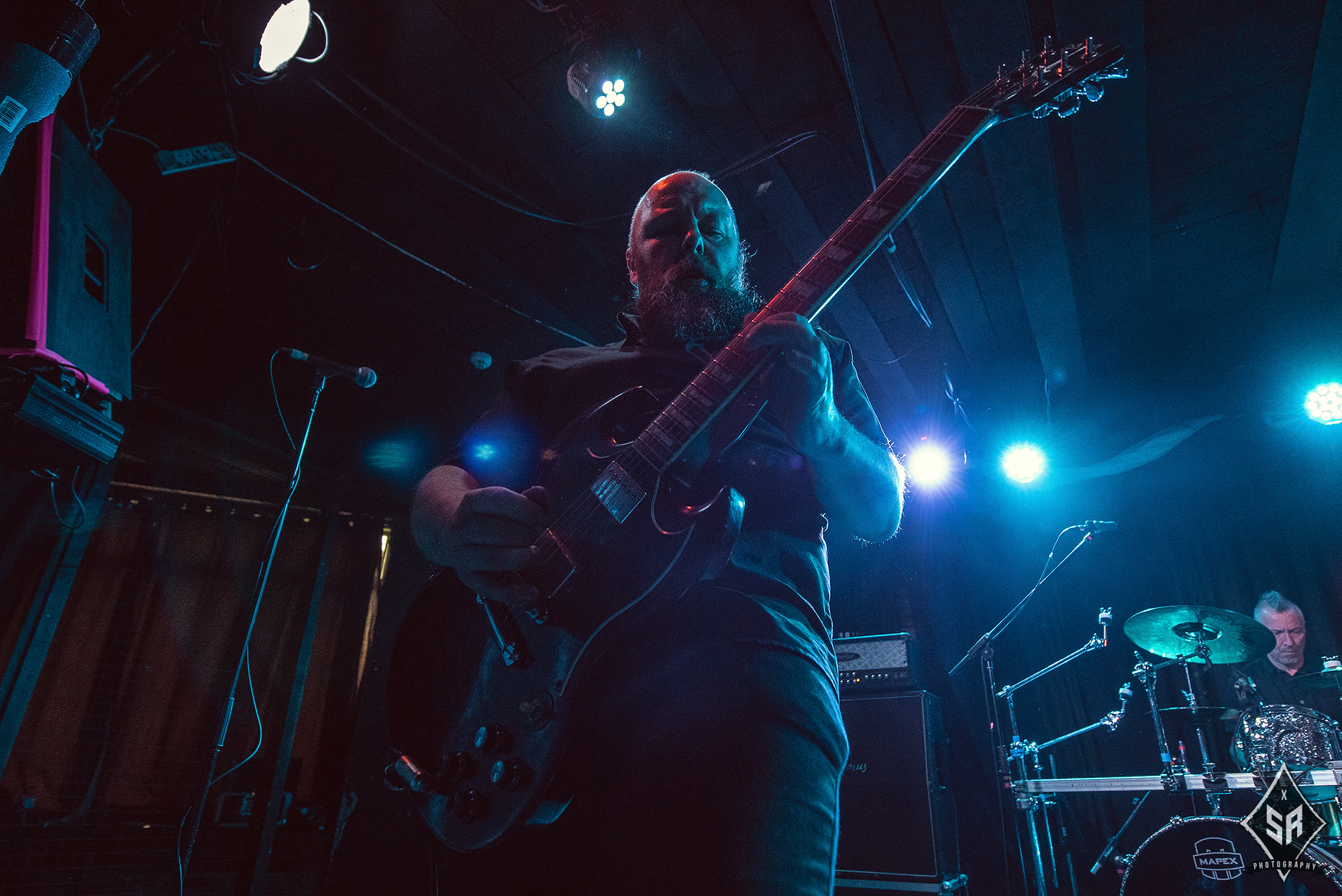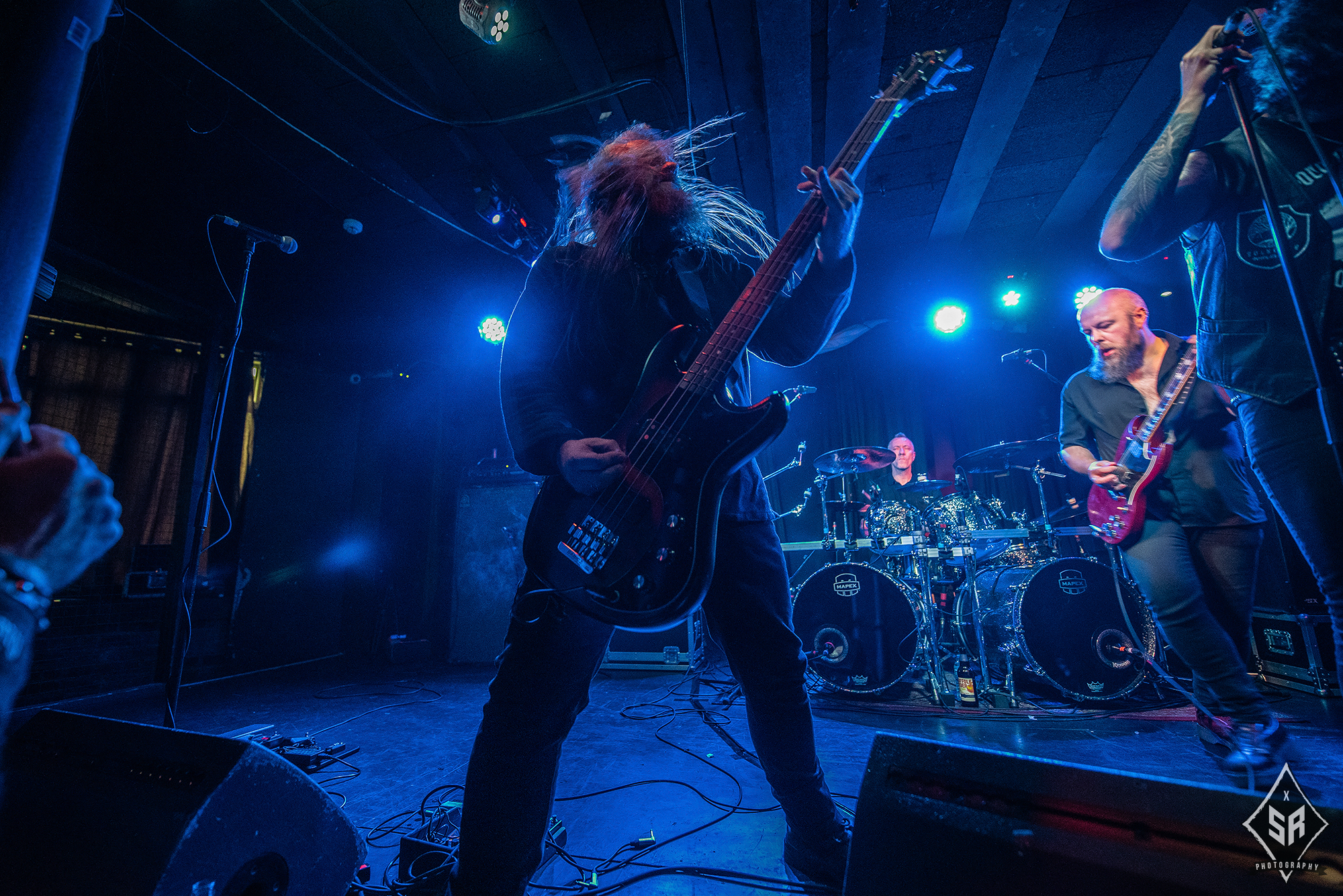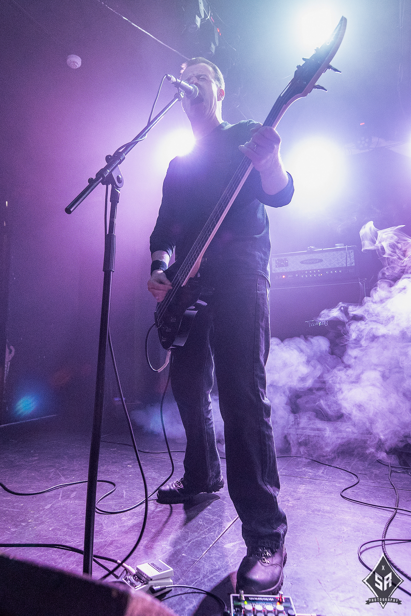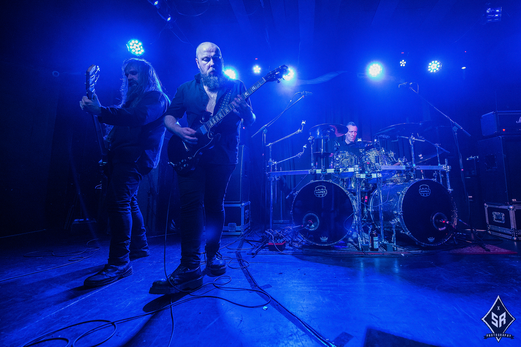 Although WINTERFYLLETH are the night’s headliners, it seems that a large portion of tonight’s crowd is here solely for SOLSTICE (WINTERFYLLETH included as they joke later on in their set). With a career spanning near three decades, the epic doom metallers are very much a firm favourite in the UK underground and with the band suffering a plethora of lineup changes across the years, it very much seems that the chance to catch them live in action is a rare treat indeed. And they did not disappoint. Although sandwiched between the black metal ferocity of WODE and the atmospheric icy riffs of WINTERFYLLETH, SOLSTICE held their ground with an arsenal of powerful riffing that towers above you, bombastic drumming and soaring vocals from new vocalist FelipeKutzbach. Although the music on offer was incredibly enjoyable, it was with Kutzbach who stole the show as his passionate vocal deliveries and animated stage presence captivated the crowd’s attention throughout their hour-long set. Given the rapturous response to every song performed here, it’s safe to say that SOLSTICE are very much adored in the underground and long may it continue.