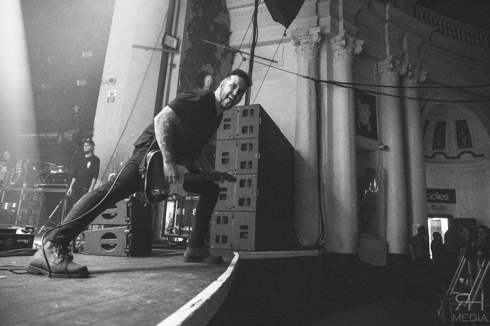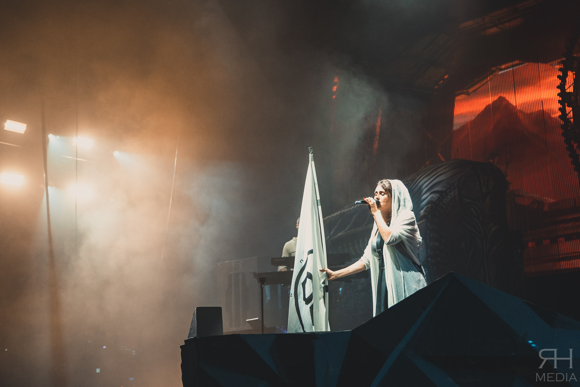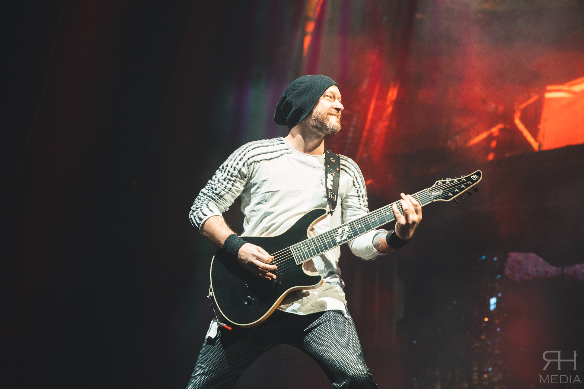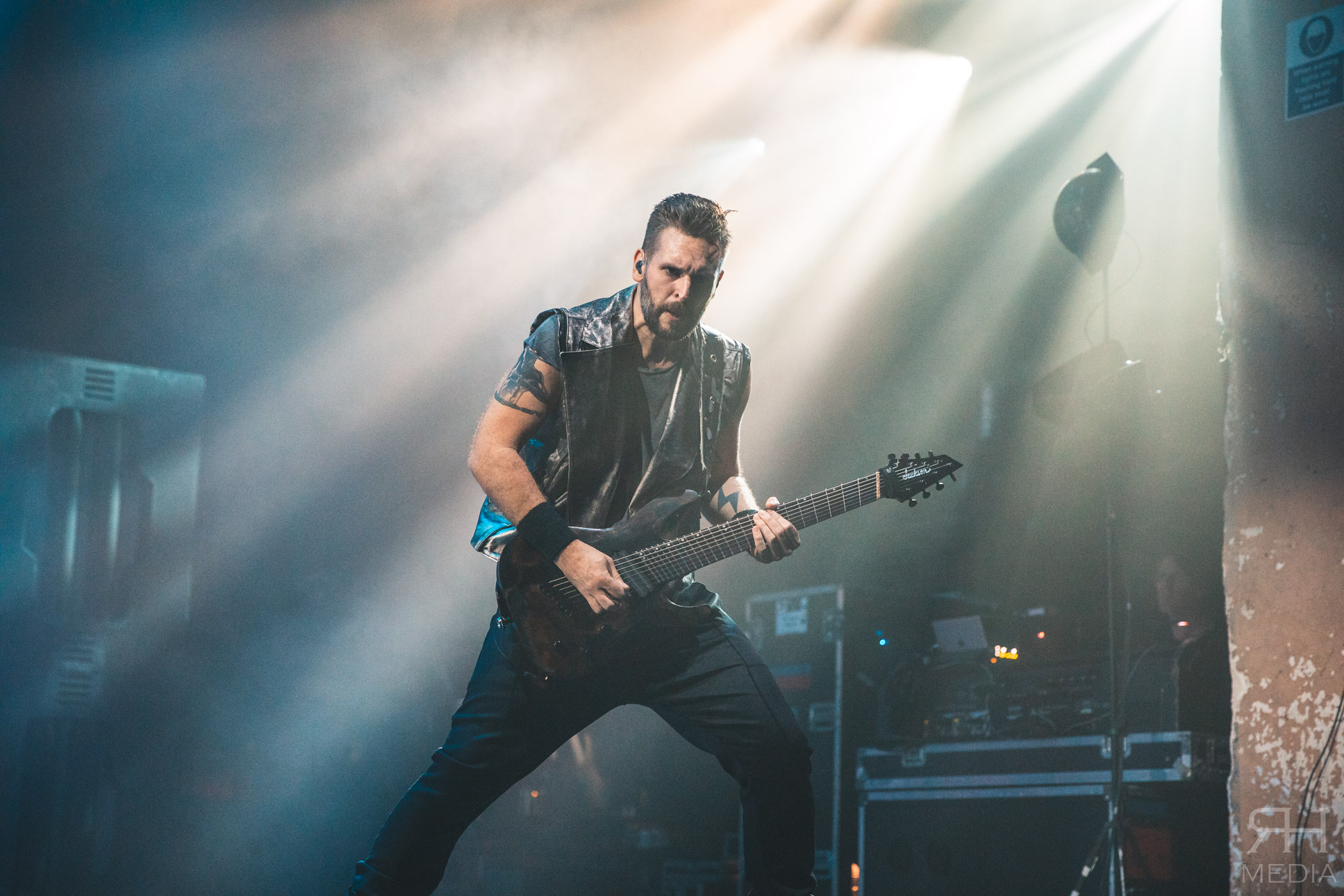 The headliners suffer from no such ills. From the moment the house lights go down and the impressive stage lights come on the very foundations of the venue are in danger of crumbling from the sheer volume of the crowd. The band’s world class frontwoman Sharon den Adel grasps a white flag and swings it around her head as the band power through the opener Raise Your Banner before casting it aside as they follow it up with their brand new single The Reckoning with guitarist Ruud Jolie taking the place of Jacoby Shaddix on vocals. The WITHIN TEMPTATION back catalogue is littered with superb metal songs and the band showcase that perfectly with the one-two combination of Stand My Ground from the band’s classic third album The Silent Force and All I Need from 2007’s The Heart Of Everything respectively, which would be the peak of the set list for most bands but WITHIN TEMPTATION at this point are only just getting going.