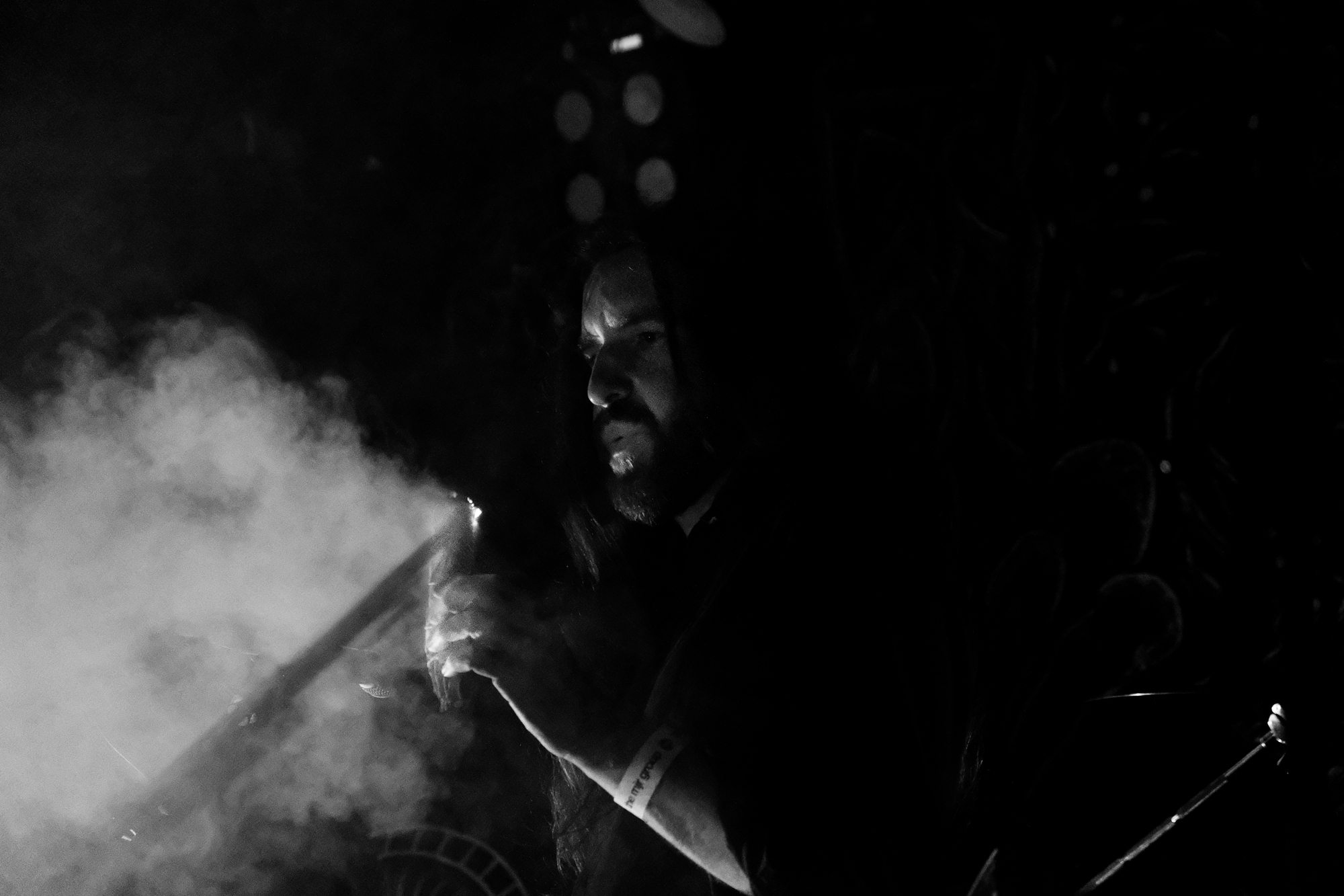 Before the band entered the stage, a long drawn out ambient intro played for what seemed like forever, foreshadowing the hum and vibrations they were about to unleash on the room, an introduction Sunn 0))) would have been proud of. After the long hum of an intro was coming to an end, the stage was populated by a lone man who proceeded to light a bundle of sage and blow it over the crowd filling the room. This wasn’t a gig, this was becoming a ritualistic performance, an experience that would linger in the audience’s mind for a long while.