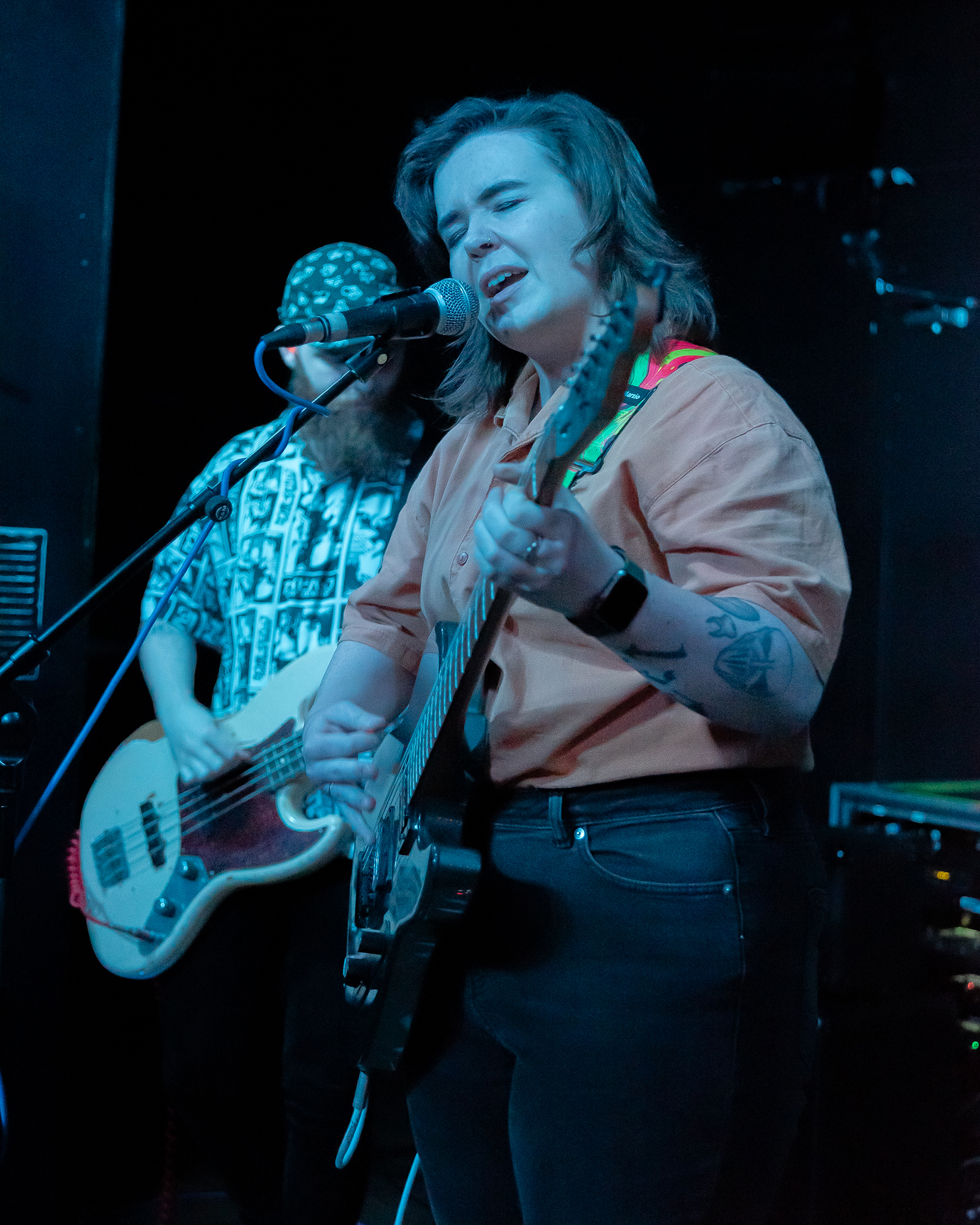 Finally, to close out the night, headliners from Brighton, WREX, tore up the stage as soon as they got on with their fierce and hard punk-influenced rock, mixed with stunning harmonies from dual vocalists Mae Seaton and George Donoghue. The rhythms and riffs blended together wonderfully, and showcased a lot of levels that exemplified their eclectic and talented songwriting skills. The heavy sound worked well for the vibe and each theme, whilst the bass connected with the rest of the instrumentation. Every song, from the opener S.A.D., to the closing song Static Waves, hit correctly and showed their range within the musicality and in their lyricism. Each part; loud, soft, heavy, and electric, were fantastic to hear. Since their latest EP, This Hell Goes A Long Way Down, was released the week before, it was great to hear songs like S.A.D, the title track, Heavenās Gate and Take A Walk live, alongside their earlier songs like Halfway and Vacant. This made for an eclectic setlist and showed the journey WREX has been on since its inception and where they are now musically.