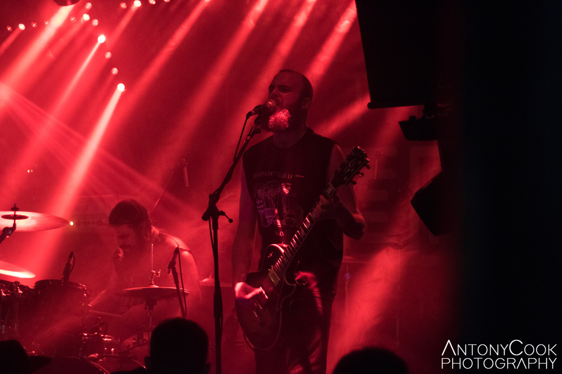 As for the gig itself, any band that comprises members of OATHBREAKER and AMENRA is not going to be awful, thereby giving openers WIEGEDOOD a solid foundation on which to build. Unsurprisingly therefore, over the next forty-five minutes they construct the darkest of castles with their black metal and besiege all concerned with the most brutal of audial assaults. Bathed entirely in red light, the trio are unrelenting in their delivery with only a poor vocal mix for opening number Svanesang stifling an otherwise excellent set. From there, every song seems to be more pulverising and evil than the last, with De Doden Hebben Het Goed III and closing number Prowl both exceptional highlights. With three albums under their belt, they’re already making waves in the extreme metal scene and this tour will do much to raise that profile even more.