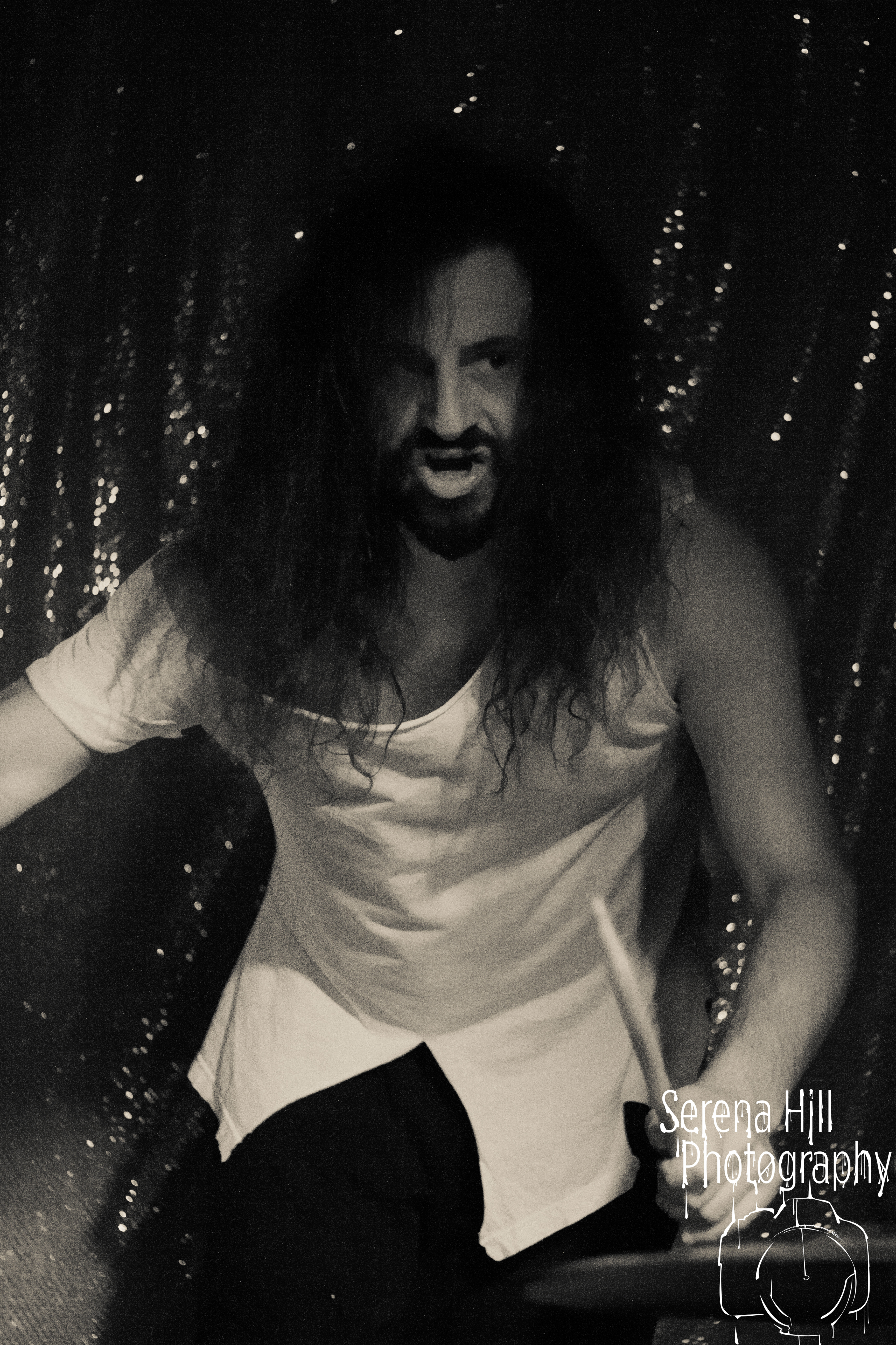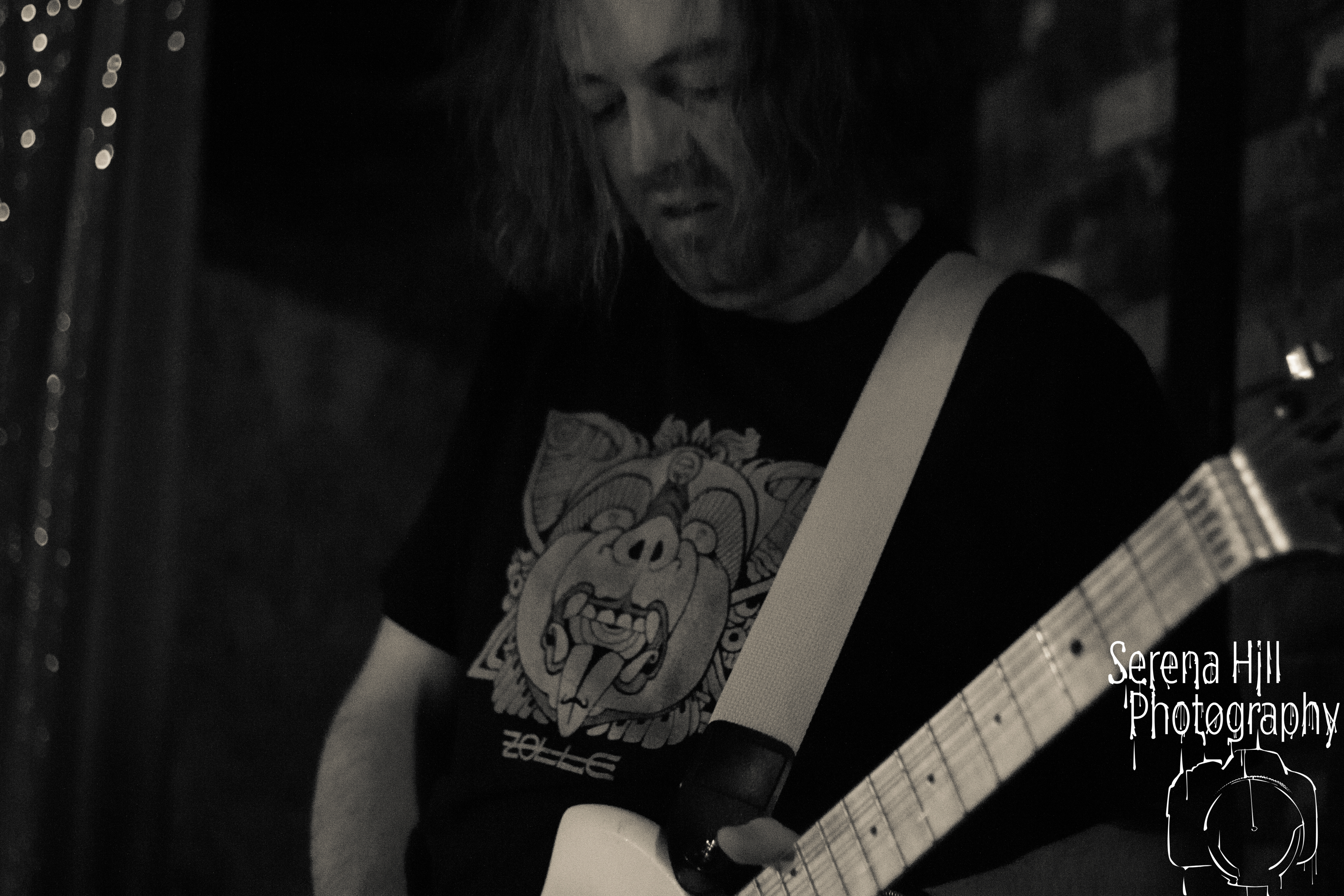 Headliners ZOLLE have made the trip over from Italy for this short UK run and have actually brought a bit of a show – there are helium balloons with their logo, a lush, red curtain backdrop adorning the stage and tube lighting flashing around member Ste‘s drumkit. The eerie clown music that plays as an intro goes on for far too long however, and that sets the tone for the rest of the duo’s set. They’re the only instrumental group here tonight and whilst they have lots of stomp and rhythm and a small core of fans that are pitting at the front throughout, there’s no telling where one song finishes and one begins, leaving ZOLLE sounding like they’re having a glorified jam session that begins to drag all too quickly. They might be putting in effort, but they’re not changing the world any time soon.