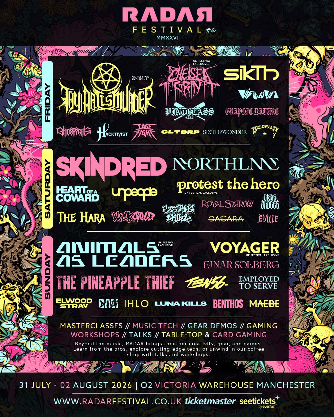 Speaking about the final additions, co‑founder Joe James comments, “that’s the music lineup complete! Today, we announce the last four bands (one replacement) for the 2026 edition: SIKTH, EINAR SOLBERG, THE HARA (stepping in for SIAMESE) and GLASS BRIDGES.