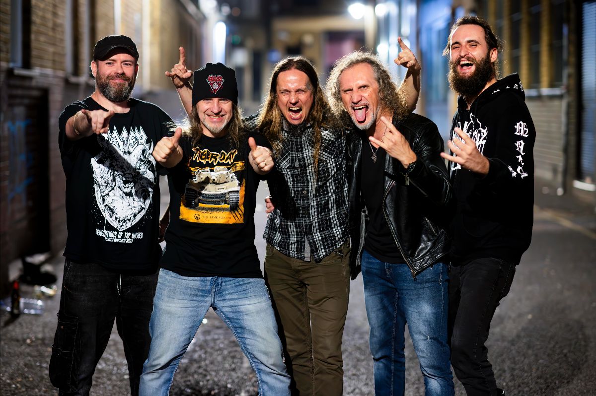 The three new tracks on the upcoming EP were once again produced by Scott Atkins at Grindstone Studio, UK. Featuring artwork by Marcelo Vasco [SLAYER, TESTAMENT, DARK FUNERAL], this EP marks the first recording as a quintet with guitarist Mauser returning to the group and new drummer Michael alongside vocalist/guitarist Peter, bassist Hal and third guitarist Spider.